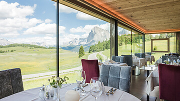 In unserem Restaurant auf der Seiser Alm verköstigen wir nicht nur unsere Hausgäste, sondern auch hungrige und müde Langläufer und Wanderer auf der Suche nach einer genussvollen Pause. Alpin-mediterrane Spezialitäten, selbst gekocht aus regionalen und frischen Zutaten, stehen bei uns im Vordergrund. Im Weinkeller finden Sie die passende Begleitung zu den Speisen – alle Flaschen wurden von unserer Sommelière Stefanie sorgfältig ausgesucht.