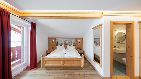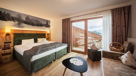 Das richtige Zimmer für alle Sonnenhungrigen. Genießen Sie die angenehme Seiser-Alm-Nachmittagssonne von Ihrem Balkon aus.