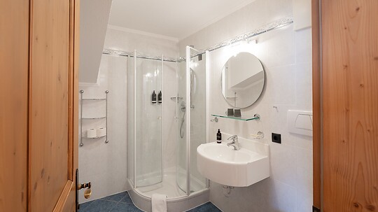 Aufwachen und die Berge sehen – Der Name ist in diesem Zimmer Programm. Egal ob vom Schlaf- oder Badezimmer, ständig können Sie Lang- und Plattkofel beobachten.
