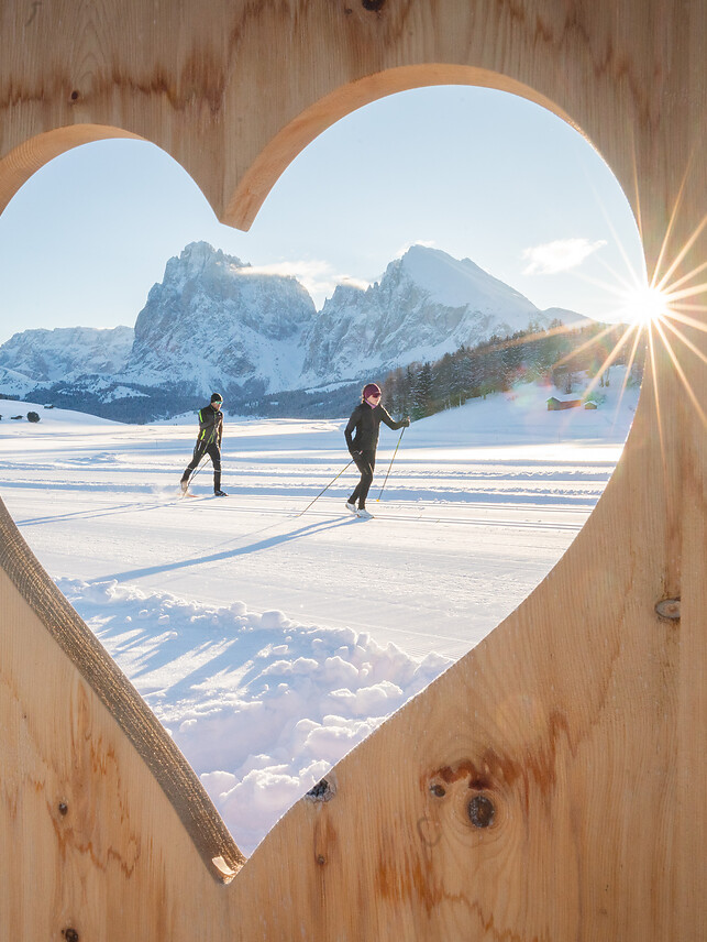 The Alpe di Siusi in winter is enveloped in a sparkling blanket of snow. Nature rests, but winter lovers awaken from their “summer slumber.” Unbridled fun awaits on the Dolomiti Superski pistes and trails, in the freestyle snowpark, on countless groomed winter walking paths, and through a host of other activities. In the evenings, your winter holiday here becomes tranquil and restorative.
