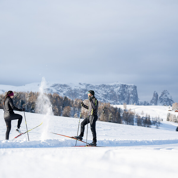 The Alpe di Siusi ski area is connected to Val Gardena, giving direct access to the Sellaronda: a ski circuit over four Dolomite passes, consisting of around 24 km of downhill slopes and 16 km of lift time, flowing seamlessly into one another. Duration: roughly 5-6 hours with breaks.