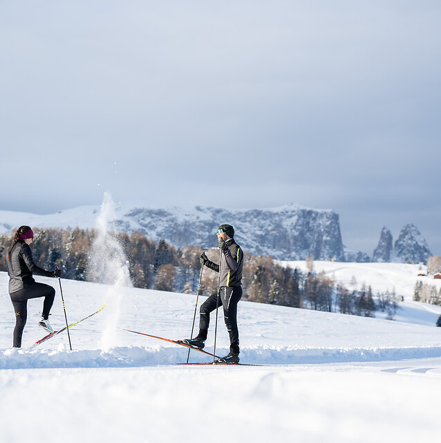 The Alpe di Siusi in the Dolomites is known for its breathtaking beauty and variety of leisure activities. One of the most popular activities on the Alpe di Siusi is cross-country skiing.