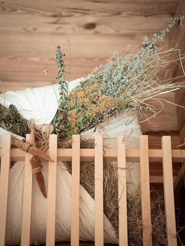 In the hay sauna of our wellness hotel on the Alpe di Siusi in South Tyrol, the spirit of bygone days is still palpable.