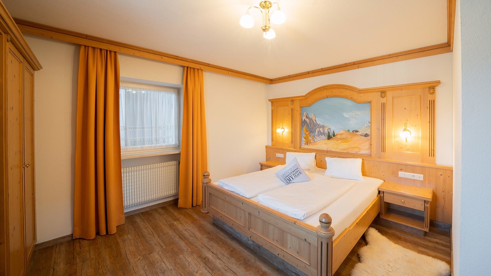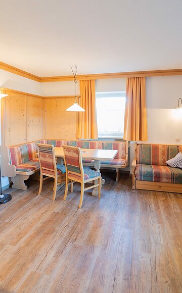 Living room with kitchenette, bedroom, comfortable seating area. Bathroom with shower, WC, hairdryer. Terrace with a view of the Seceda, Odles peaks and Sassolungo. Fluffy bathrobes, TV, telephone, room safe.