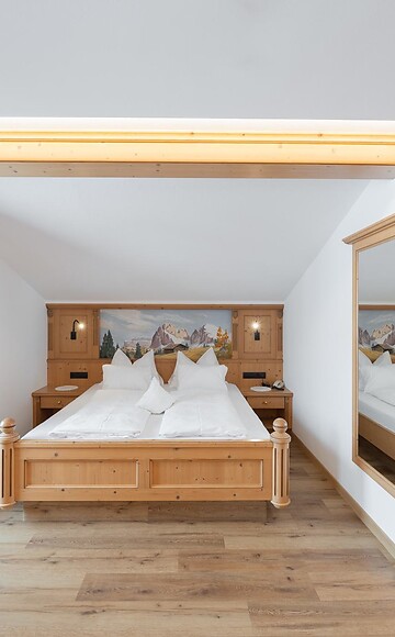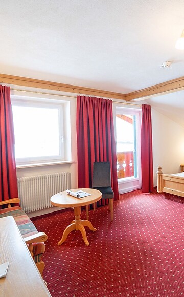 Double room, balcony with mountain view, living corner, bathroom, WC, shower, hairdryer, bathrobe; TV, hotel room safe, phone