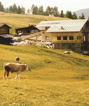 La pista per cavalli che portava alla baita oggi è una strada di accesso asfaltata, che non ha però intaccato l’atmosfera incontaminata dell’alpeggio, attualmente chiuso al traffico veicolare. In aggiunta alla prima locanda, sono state poi realizzate le camere per gli ospiti, una terrazza panoramica, un parcheggio (ora nuovamente chiuso), alcune hall, un'area benessere e infine un garage. Le aree di soggiorno, la terrazza e le camere sono state continuamente ampliate e rinnovate. Da quando Anton ha acquistato la prima motoslitta per preparare le piste da sci di fondo nel 1973, siamo diventati anche una destinazione molto popolare tra gli appassionati di questo sport.