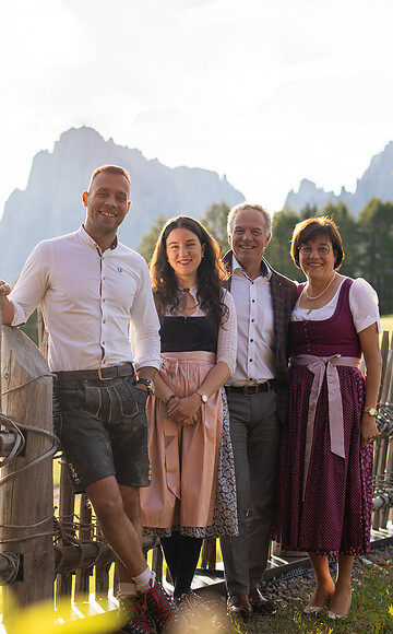 Quattro membri della famiglia Malfertheiner lavorano ancora oggi in hotel e sono sempre a disposizione degli ospiti. L’host senior Kurt non è solo il nostro tuttofare, ma si occupa anche del maso, mentre sua moglie Rita si divide tra ufficio, cucina, e, più in generale, ovunque ci sia qualcosa da fare. L’host junior Michael sta seguendo le orme dei genitori e contribuisce con le sue idee a dare nuova linfa vitale all’attività, mentre sua sorella minore, Steffi, è la nostra mente creativa.